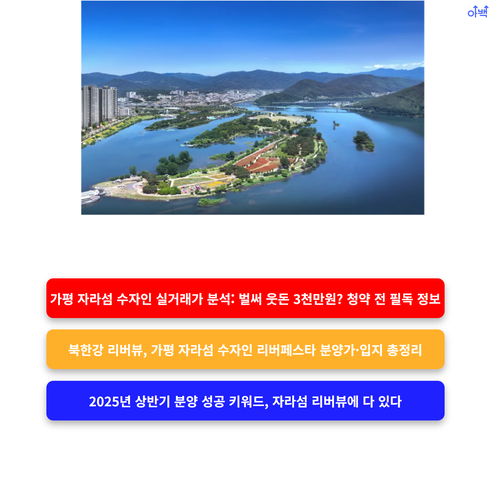‘가평 자라섬 수자인 리버페스타’는 자연, 교통, 브랜드, 분양가라는 4박자를 모두 갖춘 단지입니다.
