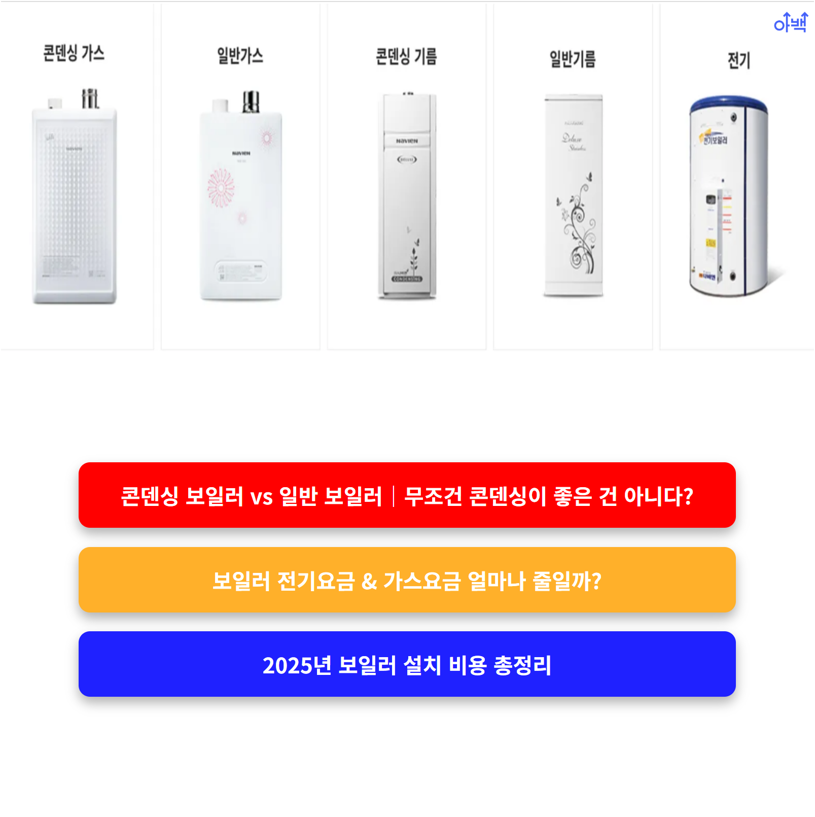 ✔️ 5년 이상 사용한다면 무조건 콘덴싱을, 단기 거주나 예산 제한이 크다면 일반형도 합리적일 수 있습니다.