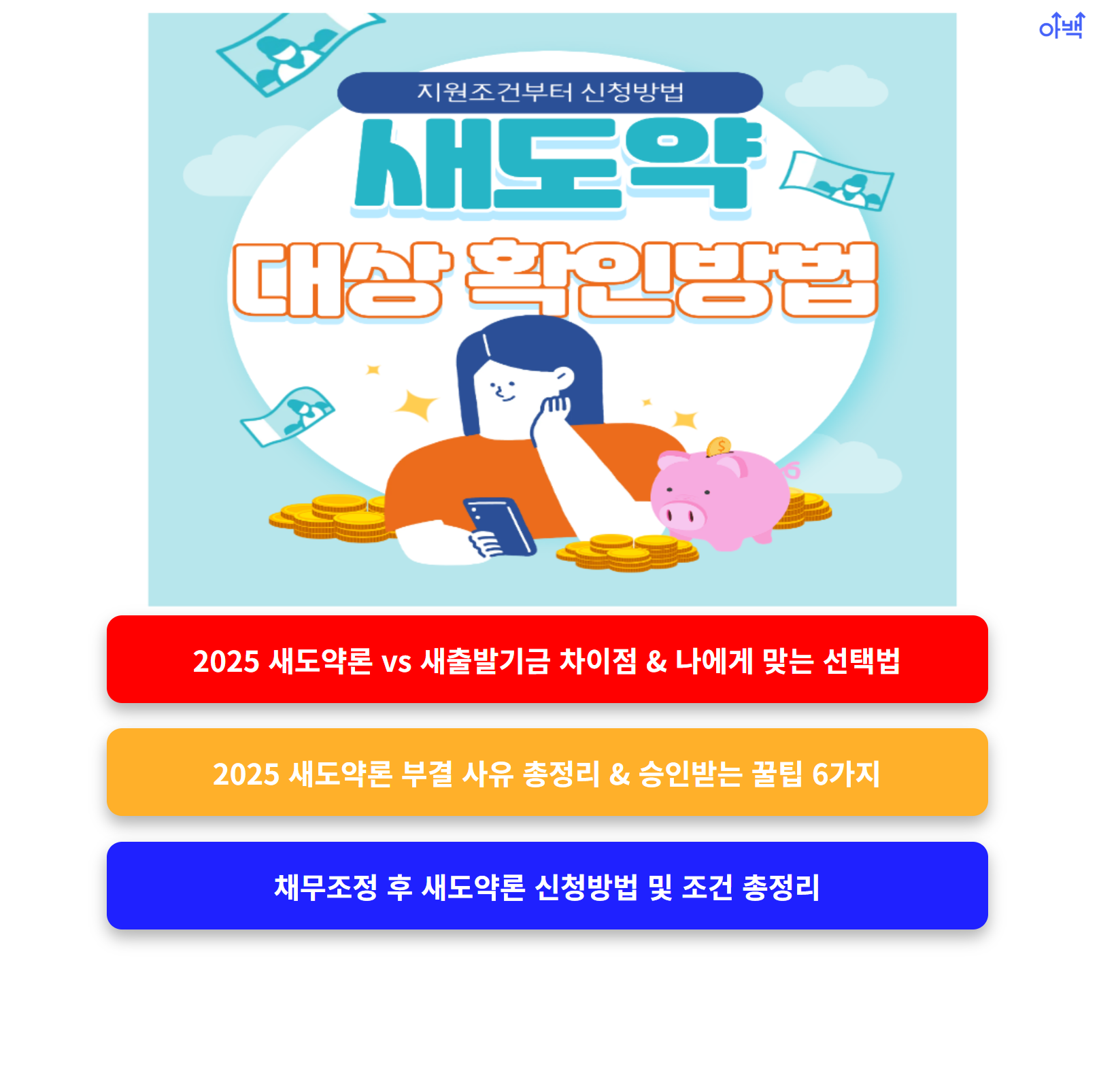 새도약론은 채무조정 이행자에게 단 한 번 주어지는 금융 기회입니다. 자격이 된다고 안심하지 마세요. 승인 포인트는 ‘디테일’에 있습니다. 지금 이 글을 보신다면 이미 반은 성공한 셈입니다. 아래 버튼에서 신청 조건을 다시 체크하고, 필요한 서류를 바로 준비해보세요!