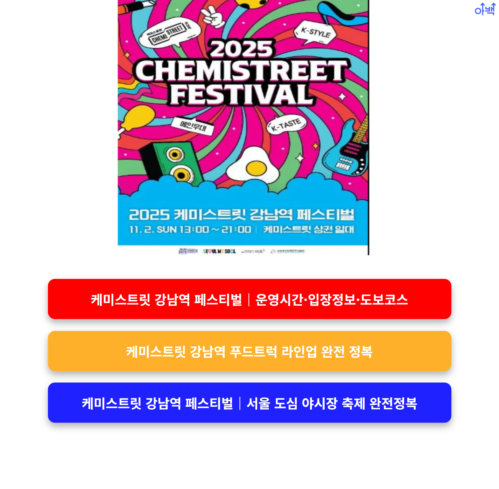 오늘은 2025 케미스트릿 푸드트럭 라인업을 한눈에 확인하고, 꼭 가봐야 할 인기 메뉴와 출점 부스 정보를 정리해드립니다. 단 하루뿐인 강남역 축제를 놓치지 마세요!
