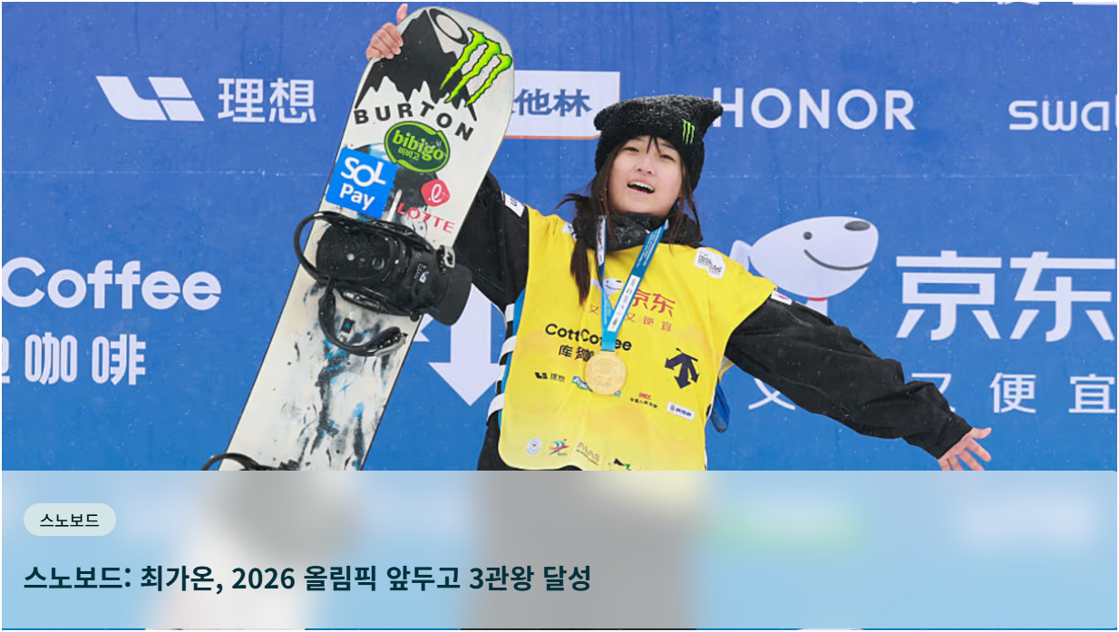 | 쇼트트랙 | 김길리, 박지원, 이유빈 등 남녀 모두 강세 |