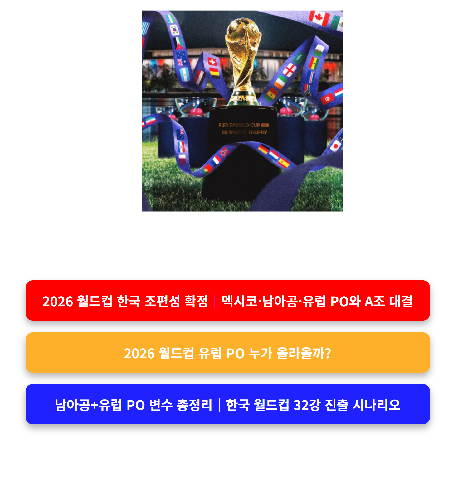 이번 2026 월드컵 조편성은 ‘죽음의 조’를 피하고, 나름 해볼 만한 상대들과 편성된 **운 좋은 조추첨**이었다는 평가가 우세합니다.