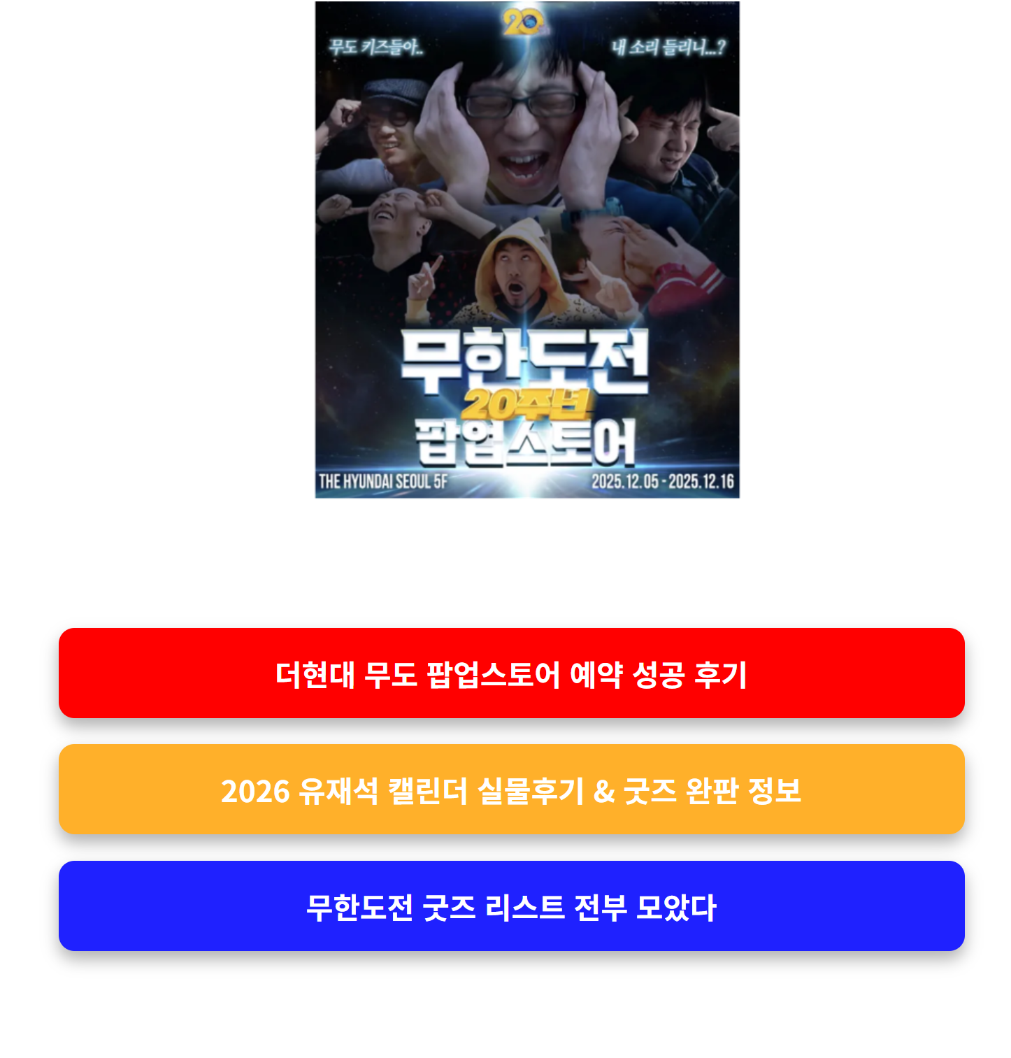 2026 무한도전 20주년 리미티드 굿즈 중 단연 돋보이는 아이템은 바로 2026 유재석 캘린더입니다.