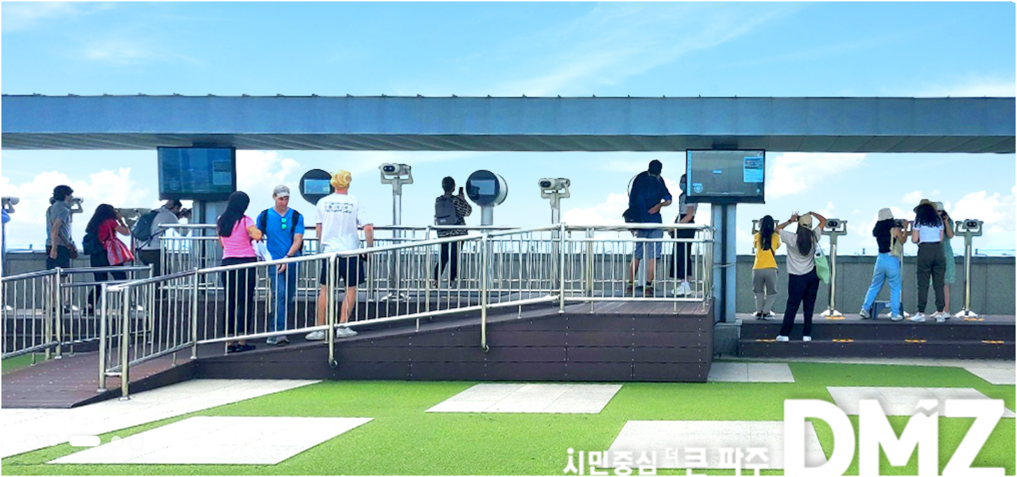 이곳에서는 북한의 개성공단, 기정동 마을, 선전용 깃발 등 북한 지역을 직접 망원경으로 관측할 수 있습니다.